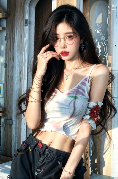 1girl, jewelry, earrings, solo, lipstick, black_hair, long_hair, makeup, red_lips,shirt,fancy brooch,pants, bracelet, black_pants, cowboy_shot, Realistic, masterpiece, highest quality, high resolution,dundar,, dyzgqzm, qingsha, ((poakl)), , zixia, Rita