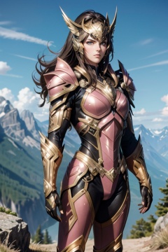 <lora:Hxarmour_00703:0.7>,Hands in Pockets,hxarmour,1[girl|man],(pink armour:1.3),Valleys Mountain Ash,