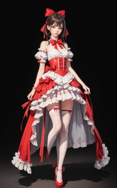 1girl,bow,dress,grey background,red bow,full body,frills,simple background,solo,thighhighs,ribbon,frilled dress,hair bow,red dress,, (extremely detailed CG unity 8k wallpaper),(((masterpiece))),(((best quality))),((ultra-detailed)),(best illustration),(best shadow), <lora:sur Mix_20240223010857:0.3>