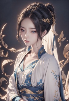 A mesmerizing and visually stunning artwork featuring a single female figure, created by a renowned artist, showcasing intricate details and vibrant colors. Official art quality with a strong aesthetic appeal. High resolution rendering in 4K, huliya, 1girl,White hanfu,