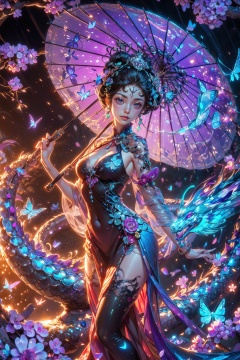 1girl beach umbrella black hair black umbrella blue butterfly blue fire blue umbrella breasts *** butterfly butterfly wings dress fire fish glowing glowing butterfly goldfish hair ornament holding holding umbrella hydrangea jewelry karakasa obake leaf umbrella looking at viewer magic makeup medium breasts oil-paper umbrella outdoors parasol parted lips pink umbrella puddle purple umbrella rain red umbrella shared umbrella short hair snail solo tattoo teruterubouzu thighhighs transparent transparent umbrella umbrella water water drop white umbrella