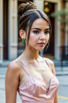 hwgirl,Build a stunning, highly detailed work of art, Siren, Average Height, Thin, Oval Face, Olive Skin, Strawberry Blonde Hair, Blue Eyes with Green Flecks, Short Nose, Pouty Lips, Prominent Chin, Long Hair, Thick Hair, Formal Braided Updo, small breasts, Cuff earrings, soft pink matte lipstick, Mosaic, appealing, dancing, one arm above head, X-shape, Fill the Frame, Anime, Comic Book,<lora:Hwgirl_V02:0.7>,