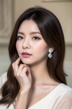 hwgirl,Masterpiece, best quality, ultra-detailed illustration, Queen, Average Height, Slim, Diamond-Shaped Face, Olive Skin, Auburn Hair, coral Eyes, Wide Nose, Thick Lips, Sharp Chin, Long Hair, Fine Hair, Straight Bob, large breasts, Stud earrings, lavender satin lipstick, Neo-Conceptualism, dignified, hands in pockets, Value, Radial, Tribal, Texture,<lora:Hwgirl_V02:0.7>,