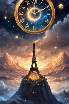 Art, Blue Eyes, Architecture, city, city lights, cityscape, Clock, Cloud, cloudy sky, constellations, Fantasy, Glow, jewelry, light particles, Magic, Magic Circle, mountain, night sky, planets, landscape, sky, solo, Space, starry sky, Tower