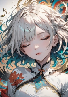 official art,unity 8k wallpaper,ultra detailed,beautiful and aesthetic,masterpiece,best quality,(zentangle, mandala, tangle, entangle),(fractal art:1.3),1girl,extremely detailed,dynamic angle,cowboyshot,the most beautiful form of chaos,elegant,a brutalist designed,vivid colours,romanticism,by james jean,roby dwi antono,ross tran,francis bacon,michal mraz,adrian ghenie,petra cortright,gerhard richter,takato yamamoto,ashley wood,atmospheric,ecstasy of musical notes,streaming musical notes visible,white background,ink,scenery,a girl formed of colored glaze,closed eyes,coloured glaze