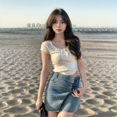 1girl,solo,skirt,building,city,cityscape,skyscraper,bridge,standing,looking_at_viewer,<lora:极品微胖美女:0.8>,