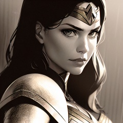 Zack Snyder’s Wonderwoman portrait in chiaroscuro black & white graphite pencil, hard-key side light, golden armor, fierce eyes, moody, wet, rain, shiny, hyper realism, cinematic lighting --ar 4:7 --s 555 --c 3 --v 5