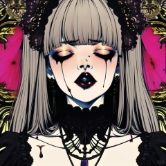 qzfp,1girl,solo,jewelry,bangs,earrings,makeup,lipstick,closed eyes,abstract,blunt bangs,necklace,upper body,Gothic,butterfly,Shed tears,Blood stains,<lora:qzfp-000008:1>,, masterpiece, best quality,
