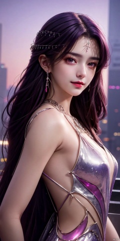 neonpunk style Neon noir leogirl,hANMEIMEI,realistic photography,,On the rooftop of a towering skyscraper,a girl stands,facing the camera directly. Behind her,a multitude of skyscrapers stretches into the distance,creating a breathtaking urban panorama. It's the perfect dusk moment,with the evening sun casting a warm glow on the girl's face,intensifying the scene's impact. The photo captures a sense of awe,with the sharpness and realism making every detail vivid and clear,Hair fluttered in the wind,long hair,halterneck, . cyberpunk, vaporwave, neon, vibes, vibrant, stunningly beautiful, crisp, detailed, sleek, ultramodern, magenta highlights, dark purple shadows, high contrast, cinematic, ultra detailed, intricate, professional, ((poakl)), Light master,, ,, dress, ,looking_at_viewer,kind smile,, yunxi