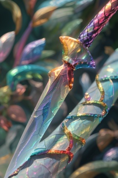 Rainbow foil,sword,blurry,depth of field,gem,scales,<lora:Rainbow:0.6>,