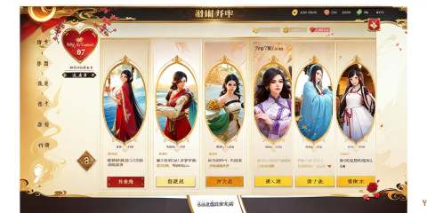 (masterpiece, top quality, best quality, official art, beautiful and aesthetic:1.2),(8k, best qa woman is standing in front of a screen with a menu on it that says 7 years of love, 1girl, solo, long_hair, black_hair, chinese_clothes, chinese_text