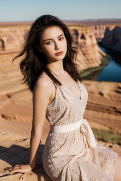 (masterpiece,best quality:1.5), Style of Dan Mora,Kingcore (🏜️,🛕),🍄, \Sylphiette (Mushoku Tensei)\, Tutoring, catcastle,Clear skies,Chic,The Horseshoe Bend,hwgirl,<lora:Hwgirl_V04:0.8>,