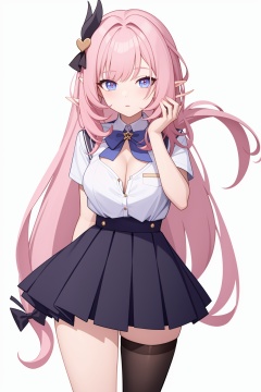 <lora:爱莉希雅v2:1:lbw=char>,elysia,1girl,a girl named elysia,high quality,cleavage,school uniform, black thighhighs, white background,