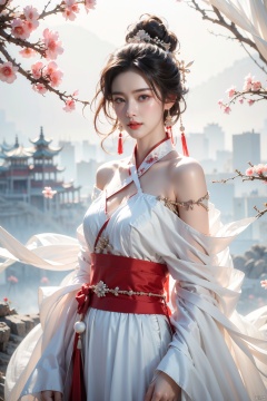 best quality, masterpiece,cowboy_shot,(Good structure),,a girl,xianjing,Off-the-shoulder, bust photo,upper body,Hanfu, Cloud, Smoke,branch,flower, smile,Gaze at the audience, Ink scattering_Chinese style, ((poakl)), ,looking_at_viewer,kind smile, , chinese dress,white dress, liuyifei,long_hair<lora:EMS-269331-EMS:0.200000>, <lora:EMS-304072-EMS:0.300000>, <lora:EMS-260325-EMS:0.500000>, <lora:EMS-10529-EMS:0.300000>