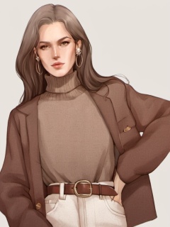 fushi, 1girl, solo, jewelry, earrings, brown pants, long hair, belt, pants, brown hair, looking at viewer, sweater, shadow, white sweater, parted lips, hands in pockets, simple background, cowboy shot, turtleneck,<lora:服饰_手绘插画_V1.0XL:0.8>, masterpiece, best quality,
