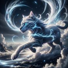 <lora:TempestMagic-21:0.8>,tempestmagic ,fantasy,ethereal transparent, tempest aura ,  motion blur,  mystical beast, glowing eyes,animal , cat