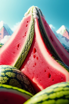 masterpiece,best quality,<lora:微缩世界-美食版>,miniature photography,the mountain formed by watermelon,
