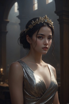 1 girl, masterpiece, dramatic atmosphere, tinfoil ,highest quality, high quality, cute, (camAngles),highres, by Jeremy Lipking, by Antonio J. Manzanedo, dramatic atmosphere, sharp focus, volumetric lighting,in luxury advertisement. ,solid background,realistic photo,romantic, fantasy, intricate, elegant, highly detailed, smart, digital painting, artstation, concept, illustration, art by artgerm, xotic atmosphere