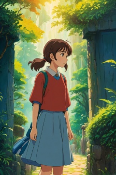 ghibli artwork a girl, dramatic, key visual, vibrant, highly detailed, studio anime, anima color