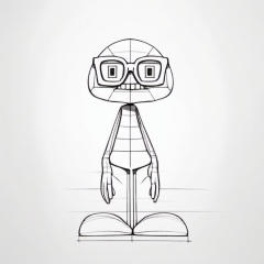 ipsketch(style), black and white line drawing, solo, standing posture, monochrome, looking at the audience from the front, The head to body ratio is 1:2, wearing love glasses, showing teeth, geometric head, cartoon Figure, upright posture, thin arms and legs, simple lines, white background.<lora:ip sketch_V3XL-000004:0.7>,