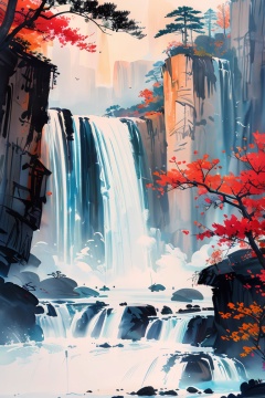 masterpiece,best quality,colorful inkpainting,Huangguoshu Falls,scenery,waterfall,outdoors,water,tree,bird,<lora:colorful-inkpainting-000016:0.8>,