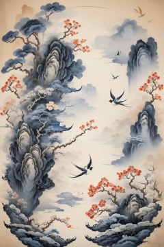 The flowers are always withering, which makes people helpless, and the swallows return again, wandering alone in the flower fragrance path. Chinese ink and wash style