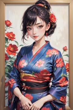 fine art, oil painting, 1girl,kimono,yukata,