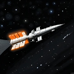 line art style, sliver spacecraft, CDE_spaceship, military, no humans, star \(sky\), realistic, military vehicle, space, vehicle focus, spacecraft