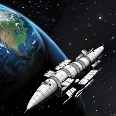 line art style, CDE_spaceship, no humans, star \(sky\), realistic, military vehicle, space, vehicle focus, spacecraft, planet, earth \( planet \),
