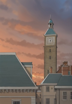 (best quality), ((masterpiece)), (highres), illustration, original, extremely detailed,  <lora:疗愈天空:0.7>tower, clock tower, no humans, clock, sky, scenery, cloud, building, outdoors, window, cloudy sky, chimney, sunset