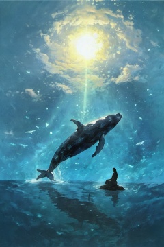 (best quality),((masterpiece)),silhouette,whales,humans,silhouette,solo,glowing,mineral color painting,<lora:yancai-000012:0.8>,