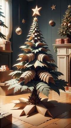 CardboardStyle <lora:CardboardStyle:1> christmas tree, simple, basic, corrugated, cardboard, texture, crafts, (Masterpiece:1.3) (best quality:1.2) (high quality:1.1)
