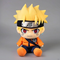 stuffed-toy, masterpiece,best quality,1boy, blonde hair, male focus, solo, smile, uzumaki naruto, grin, chibi, forehead protector, konohagakure symbol, looking at viewer, headband, facial mark, orange eyes, round image, whisker markings, jacket, spiked hair,