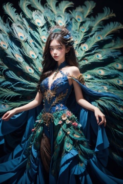 18 y.o girl,dress,peacock feather,flower background,<lora:Again_Style:0.8>,<lora:Again_Girl_A11:0.8>