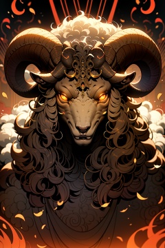 horns,looking at viewer,glowing eyes,glowing,solo,orange eyes,sheep horns,sheep,curly hair,horizontal pupils,yellow eyes,zodiac,Dark,masterpiece,best,<lora:暗黑十二生肖_Zodiac:0.8>,