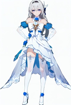 8k,best quality,masterpiece,(ultra-detailed:1.1),(high detailed skin),(full body:1.4),white background,standing,looking at viewer,(solo),hand on hip,<lora:liuying-v100-000027:0.8:lbw=OUTALL>,wedding dress,liuying,1girl,dress,white thighhighs,bangs,long hair,white gloves,white dress,grey hair,high heels,(white background, simple background:1.6),(beautiful_face),((intricate_detail)),clear face,((finely_detailed)),fine_fabric_emphasis,((glossy)),full_shot,