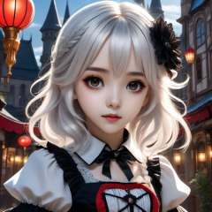 ((masterpiece))),(((best quality))),((ultra-detailed)),(illustration),(dynamic angle),((floating)),(paint),((disheveled hair)),(solo),(1girl), little girl, small breast,(((detailed anima face))),((beautiful detailed face)),collar,(((gothic, little girlta_fashion, gothic_little girlta))),((white hair)),((streaked hair)),beautiful detailed eyes,(red eyes),(((detailed castle))),(((high saturation))), ((best shadow)) ,((night,red moon,blood on face,blood on cloths,splash blood)),arms behind back((young,little girl,cute,clear face))