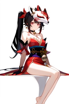 <lora:nai3画风bysdlion-000035:1.0:lbw=outall>  <lora:花火v2:0.9:lbw=char> 1girl, huahuo, twintails, bare shoulders, fox mask, mask on head, red dress, detached sleeves, black gloves, jingle bell, choker, obi, kimono, tattoo, barefoot, (masterpiece,best quality,high quality:1.2),absurdres,