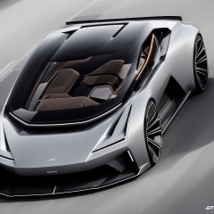 1, monochrome, no humans, ground vehicle, motor vehicle, logo, car, vehicle focus, sports car, Concept Car Design
