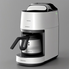 A metal coffee machine, display, simple background, white background, rendering, Industrial design of metal products