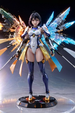(1girl:1.3),full_body,gundam,highly realistic,glassy translucence,graceful, pose, blink-and-you-miss-it detail,Sci-fi light effects,(Illuminated circuit board:1.6),rich colors,gorgeous colors,colorful, with light beams on the face, tianqi, tqj-hd, 3D, (RAL-VLNTXPLZN and completely explosion), PVC rendering figure