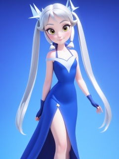 <lora:xl_Disney style(kohaku_delta)-000006:1>,Disney style,3d,1girl,long hair,solo,gloves,fingerless gloves,smile,dress,quad tails,star \(symbol\),looking at viewer,stellated octahedron,bare shoulders,yellow eyes,bangs,eyebrows visible through hair,collarbone,blue dress,very long hair,ribbon,hair ribbon,closed mouth,blush,halterneck,blue gloves,silver hair,twintails,hair ornament,sparkle,hair tubes,outstretched arm,, masterpiece, best quality,