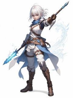 masterpiece:1.2, best quality),(intricate details),sketch,solo,(((boy))),game character, original design,(intricate details),sketch 1girl, weapon, staff,weapon,holding weapon,white background,looking at viewer, boots,simple background, full body, standing, gauntlets,fighting stance, pants,