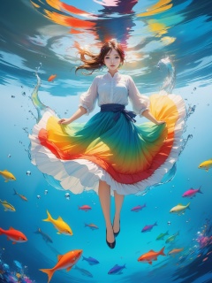 (flat color:1.1),(colorful:1.3),(masterpiece:1.2), best quality, masterpiece, original, extremely detailed wallpaper, looking at viewer,1girl,solo,floating colorful water,