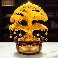 (masterpiece, best quality:1.2), crystal money tree(((masterpiece))), ((best quality)), ((intricate details)), ((Surreal))(8k),金钱树,针织玩偶,果冻形成的猫
