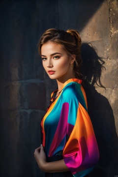 Cute girl, Sexy pose, Fashionable ,Vibrant colors, colorful clothes, Confident expression, Majestic environmental elements, Striking and modern cover design, Trendy and attention-grabbing background, Center of focus is fashion.in the dark,deep shadow, light master,light master<lora:EMS-317795-EMS:0.800000>