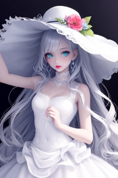 1 girl, solo,thin and tall,loli, aqua eyes, multicolored eyes, ((Eye highlight)), ((Red glossy lip gloss)), Earrings, bangs, long hair,wedding dress,Wedding Hat,flowertheme,pink long hair,(((masterpiece,best quality))),((good structure)),((Good composition)), ((clear, original,beautiful)), (clear details, clear light,clear structure),