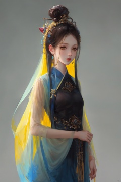 1girl, qingsha,,yellow blue theme,standing ,in the dark,simple background,upper body, looking at viewer,long colorful hair,(((masterpiece,best quality))),((good structure,Good composition,good atomy)), ((clear, original,beautiful)),