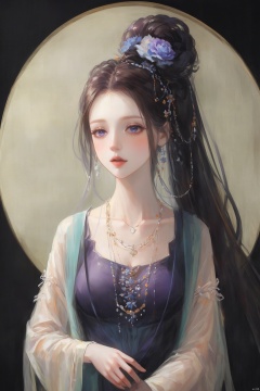 1girl, qingsha,,purple yellow white theme,standing ,in the dark,simple background,upper body, looking at viewer,long colorful hair,(((masterpiece,best quality))),((good structure,Good composition,good atomy)), ((clear, original,beautiful)),