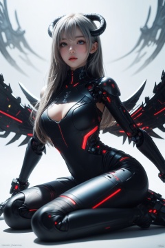 (masterpiece, best quality,top quality),[(white background:1.5)::5],(wide shot:0.95),from_below,(full body),Dynamic angle,solo,1 woman,looking at viewer,siting,dragon_horns,demon_wings,silver hair,black long dress,bandaid_on_leg,),black magic,purple theme,(universe in background:1.2),star_(sky),hyper_galaxy,depth_of_field,planet in background,particle effects,[(white background:1.5)::5],Fantasy,cyberpunk,Semi mechanical girl,cyborg,(mechanical wings:1.2),